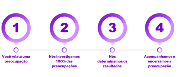 A nossa Linha Direta de Ética nos Negócios é uma ferramenta de denúncias confidencial, administrada pela NAVEX, por meio da qual você pode informar, usando da boa-fé, qualquer preocupação relativa a comportamento desrespeitoso, inadequado, fraudulento, antiético ou ilícito, incluindo preocupações quanto a retaliações. As preocupações podem ser informadas on-line pelo site ou por um número de telefone específico para o seu país. Observe que a Linha Direta de Ética nos Negócios não deve ser usada para situações de emergência — recorra às autoridades locais.